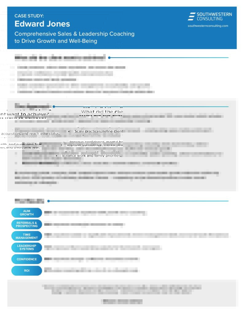 Southwestern Consulting coached Edward Jones financial advisors using a time-tested 150+ year model, which includes a 12-month, tailored “whole person” approach to Sales & Leadership Coaching.